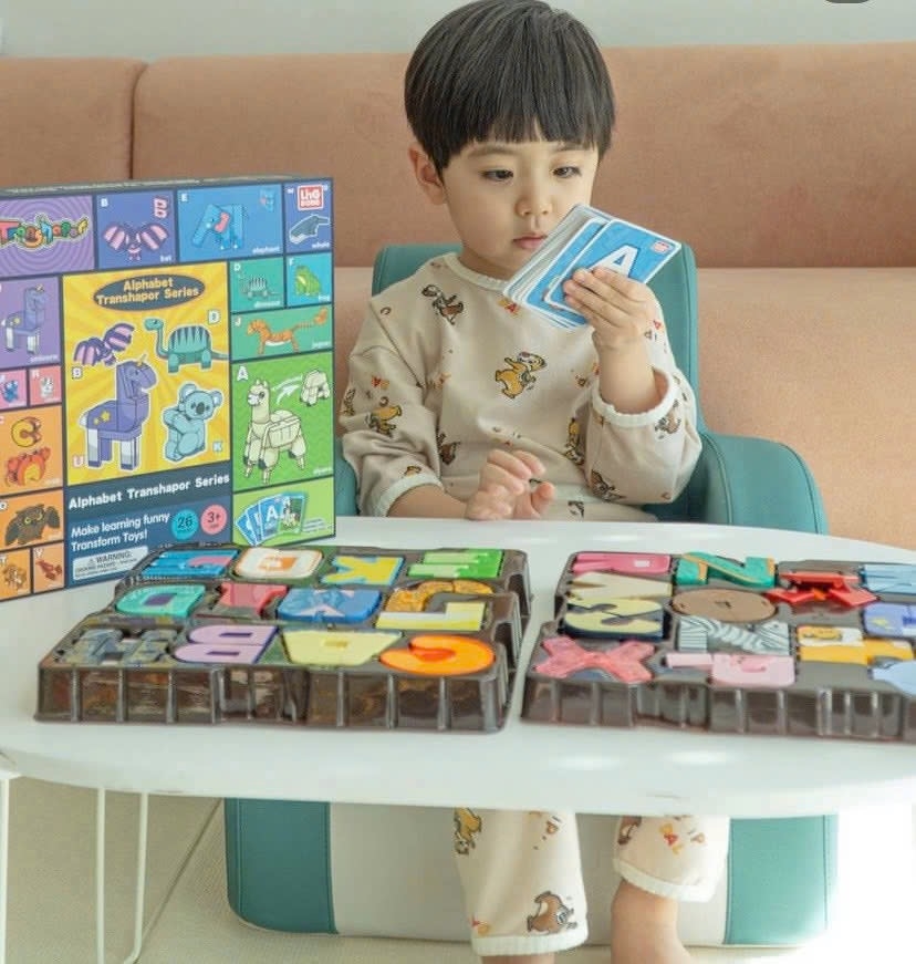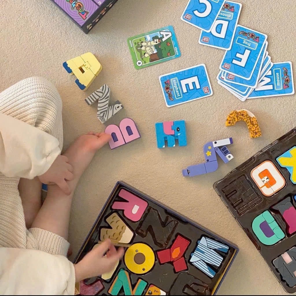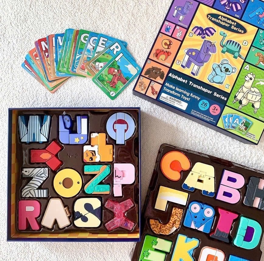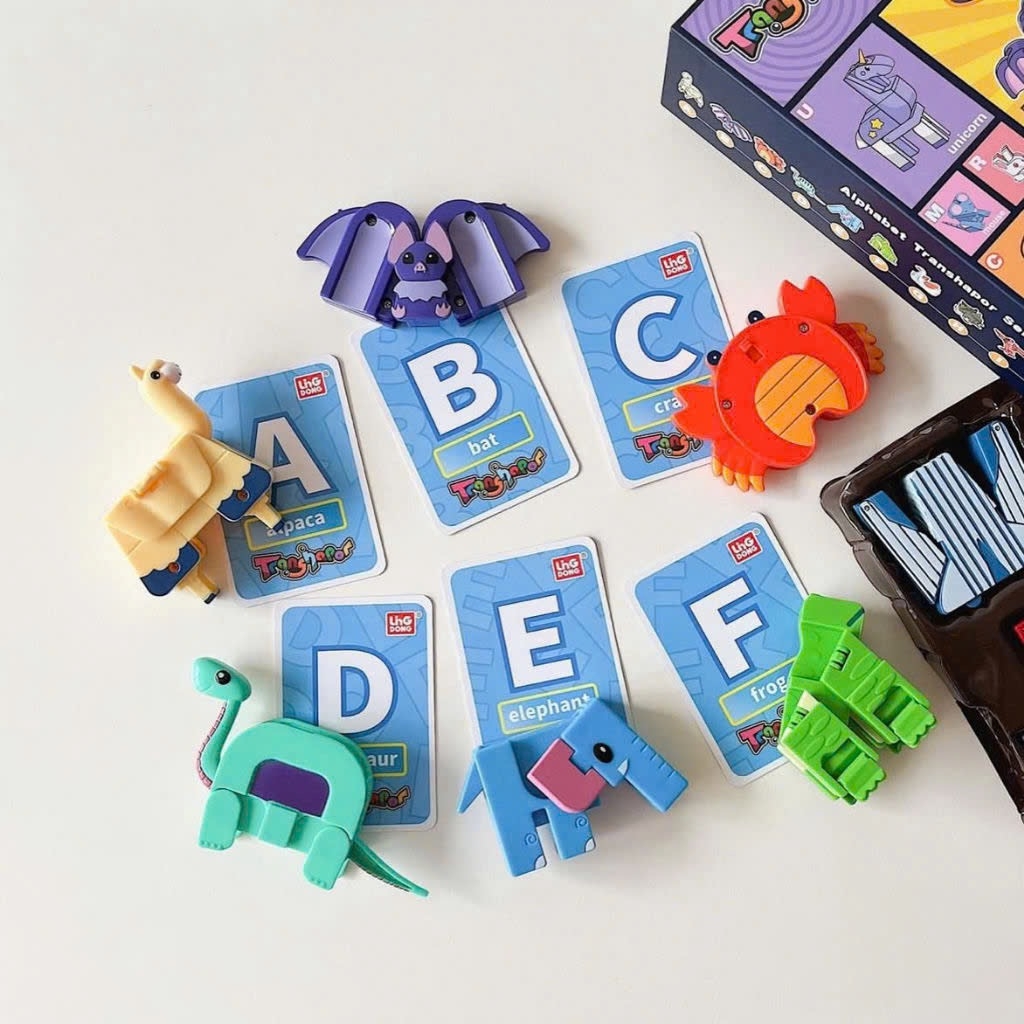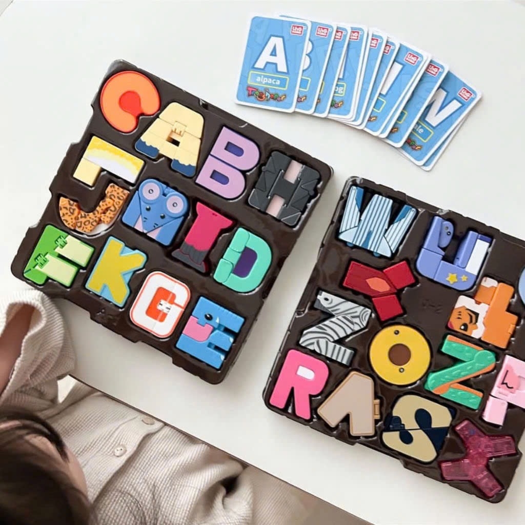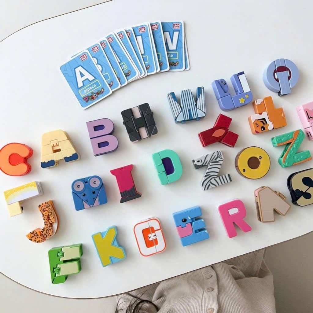 Bộ đồ chơi gồm 26 chữ cái trong bảng chữ cái alphabet có khả năng biến hình và 26 thẻ hình: