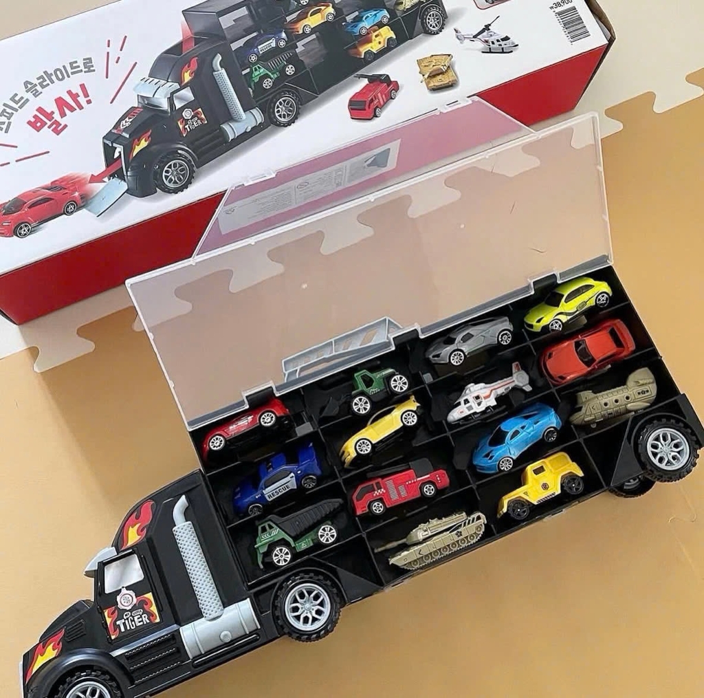 🚗 1 bộ bao gồm 1 xe tải to và 14 xe nhỏ gồm nhiều dòng xe khác nhau từ ô tô bình thường đến xe thể thao, xe xúc, xe tải, xe quân sự, xe cứu hỏa và máy bay 🚁