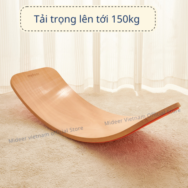 - Ván Cong Mideer nặng tới 4 kg và dài 83cm, chịu tải trọng tối đa 150kg cả bố và mẹ đều chơi cùng con được trong chiếc ván này mà yên tâm không hề lo bị gãy hỏng.