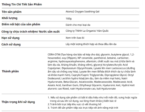 Soothing gel làm dịu da hữu cơ oxygen Atono2 cho bé từ 0M+