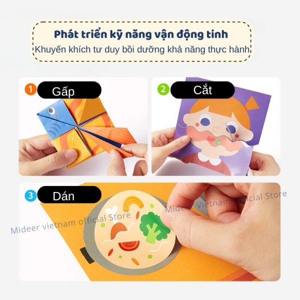 Đồ Chơi Trí Tuệ Giấy Thủ Công Cắt Dán 3 Cấp Độ Let’s Cut Paper, Đồ chơi thủ công sáng tạo Mideer Let’s Cut Paper