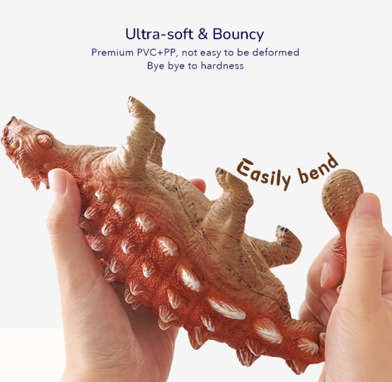 Làm từ chất liệu PVC+PP cao cấp nên mô hình khủng long này không dễ bị biến dạng. Con có thể uốn cong mô hình mà không bị gãy.