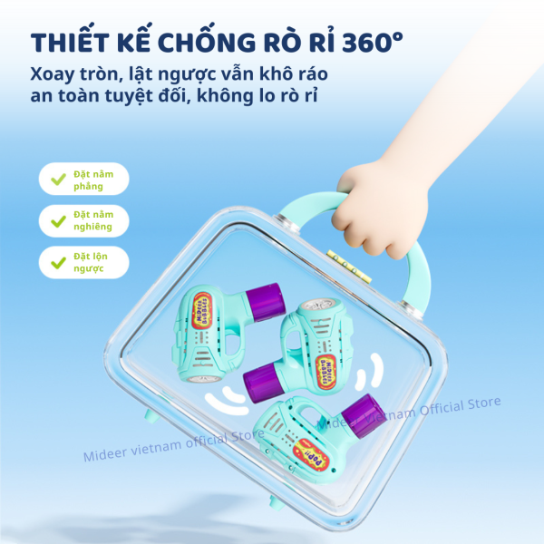9. Súng bắn bong bóng Mideer là đồ chơi cao cấp chính hãng Mideer theo tiêu chuẩn chất lượng Châu Âu EN71, nên ba mẹ hoàn toàn yên tâm về chất lượng khi cho con sử dụng.