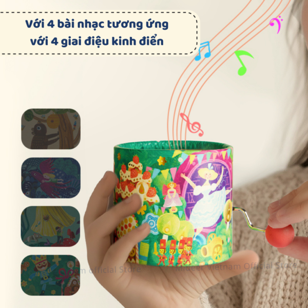 - Đồ chơi âm thanh Mideer Hand Crank Music Box Các sản phẩm được kết hợp với các nghệ sĩ nổi tiếng trên thế giới mở ra 1 bầu trời màu sắc ghi lại những kỹ ức đặc biệt của tuổi thơ , hỗ trợ sự khai sáng về âm thanh cho trẻ nhỏ.