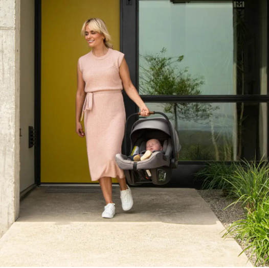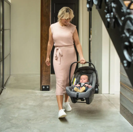 Tương thích với xe đẩy Nuna và nhiều dòng xe đẩy khác nhờ hệ thống gắn kết thông minh, giúp chuyển đổi từ xe hơi sang xe đẩy nhanh chóng.