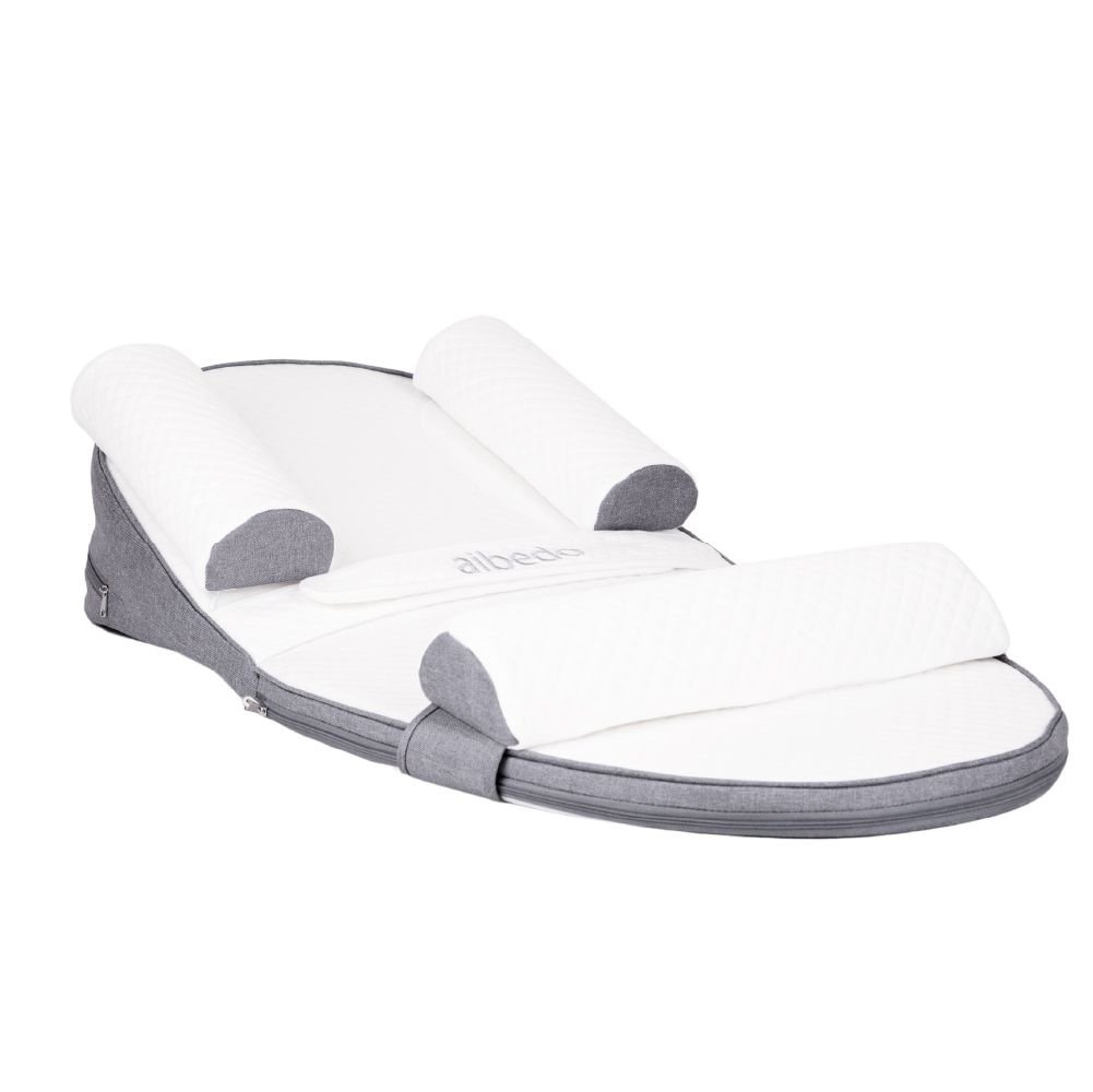 - Gối chặn phía dưới và hai bên có thể di chuyển linh hoạt theo kích thước cơ thể bé giúp bé ngủ ngon, chống giật mình
