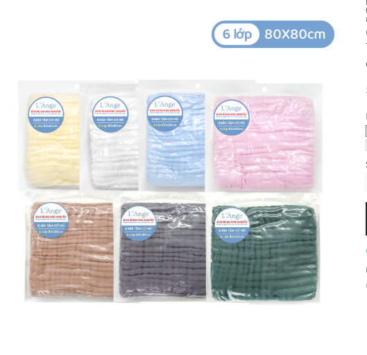 L'ANGE – chăm sóc bé từ những chi tiết nhỏ nhất. Với khăn tắm 6 lớp có nón 80X80cm, bé luôn cảm thấy mềm mại, ấm áp và an toàn, mẹ yên tâm mỗi lần tắm cho con.