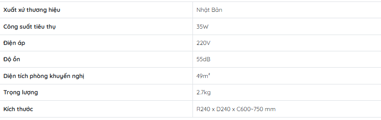 - Độ ồn: 55dB