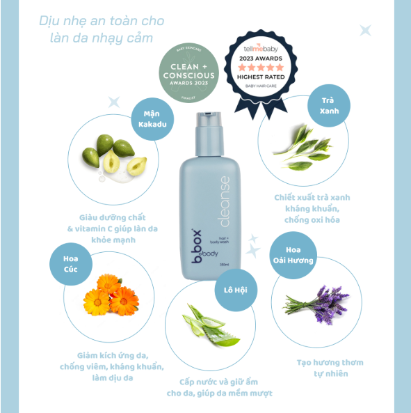 👉 Sữa tắm gội toàn thân cho bé sơ sinh B.Box 350ml chính là giải pháp chăm sóc da và tóc an toàn, dịu nhẹ, giúp bé luôn khỏe mạnh và thơm mát mỗi ngày. Sản phẩm không chỉ được các mẹ Úc tin dùng mà còn là lựa chọn hàng đầu của nhiều phụ huynh trên toàn thế giới.