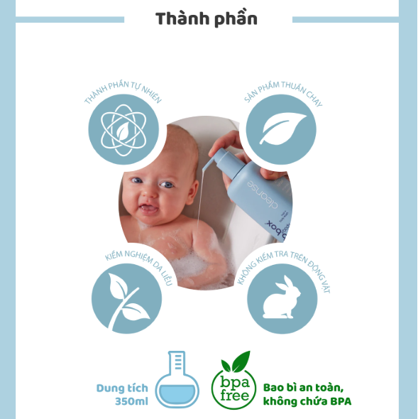 🌿 Thành phần thiên nhiên an toàn: Công thức chiết xuất từ các thành phần dịu nhẹ, không chứa parabens, SLS, hương liệu nhân tạo hay chất tạo màu, đảm bảo an toàn tuyệt đối cho bé sơ sinh.