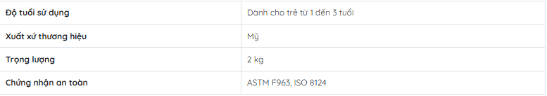 - Chứng nhận an toàn: ASTM F963, ISO 8124