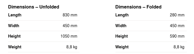 Kích thước gấp: 59 x 45 x 28 cm