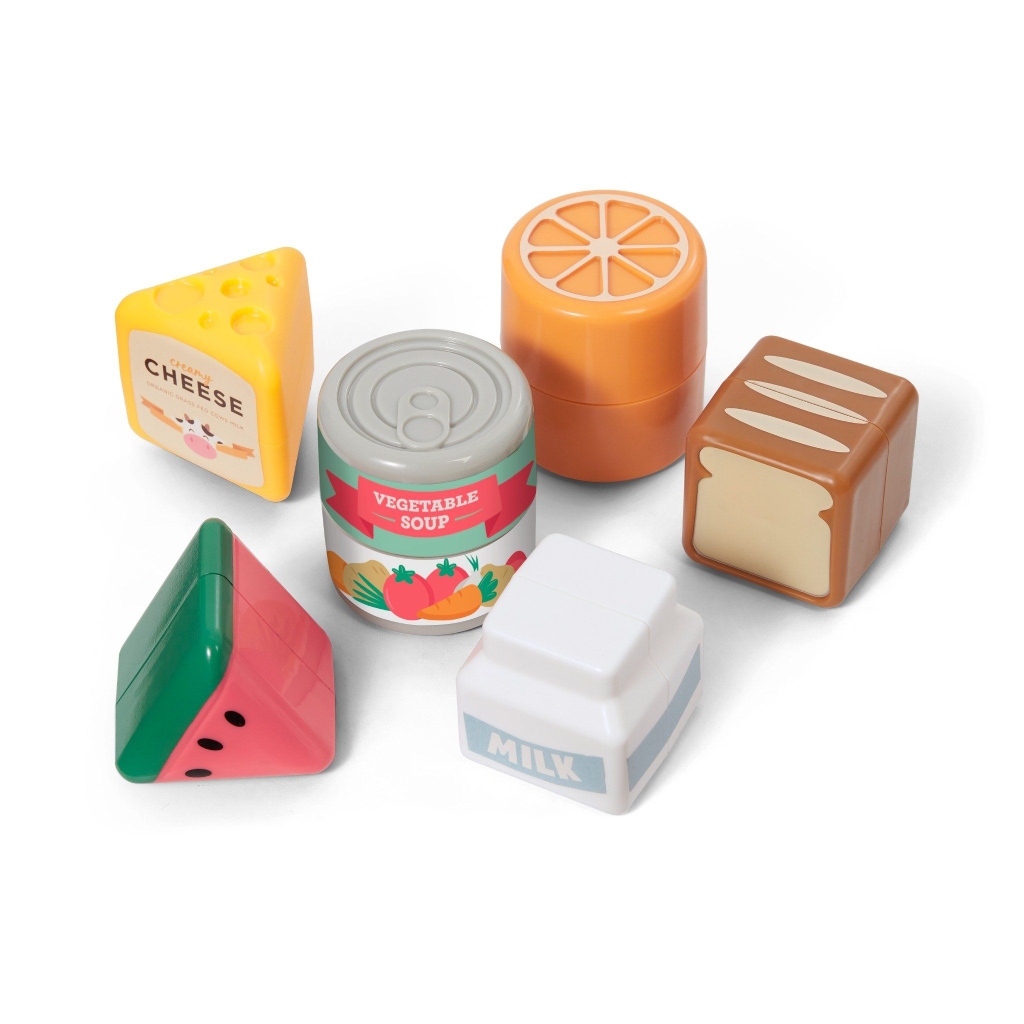 - Xe đẩy tập đi kết hợp giỏ đựng hàng và khoang chứa đồ chơi rộng rãi, kèm 06 mô hình đồ chơi món ăn