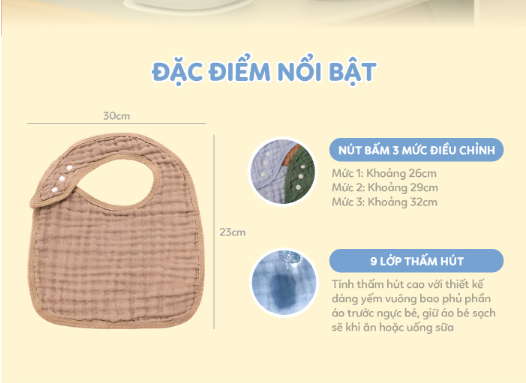 Vải bông 9 lớp dày dặn, mềm mại, không gây kích ứng da nhạy cảm của bé.